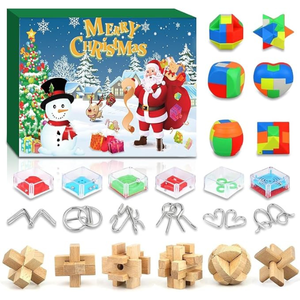 🧠 24 lavinamieji siurprizai: Kiekvienoje dėžutėje slepiasi skirtingas mini galvosūkis – nuo Luban lock iki devynių žiedų dėlionės. Kiekviena diena – naujas iššūkis ir pasiekimas!